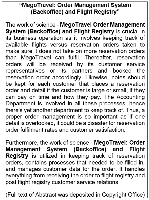 Work of Science: MegoTravel: Order Management System (Backoffice) and Flight Registry