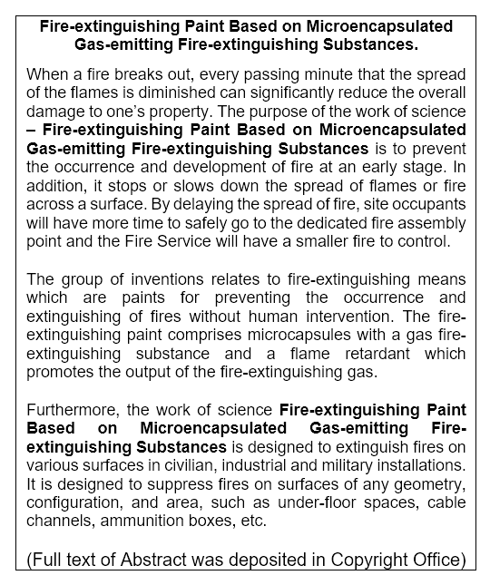Work of Science: Fire-Extinguishing Paint Based on Microencapsulated Gas-Emitting Fire Extinguishing Substances