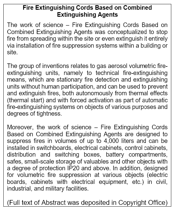 Work of Science: Fire Extinguishing Cords Based on Combined Extinguishing Agents