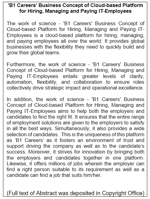 Work of Science: 'B1 Careers' Business Concept of Cloud-based Platform for Hiring, Managing and Paying IT-Employees