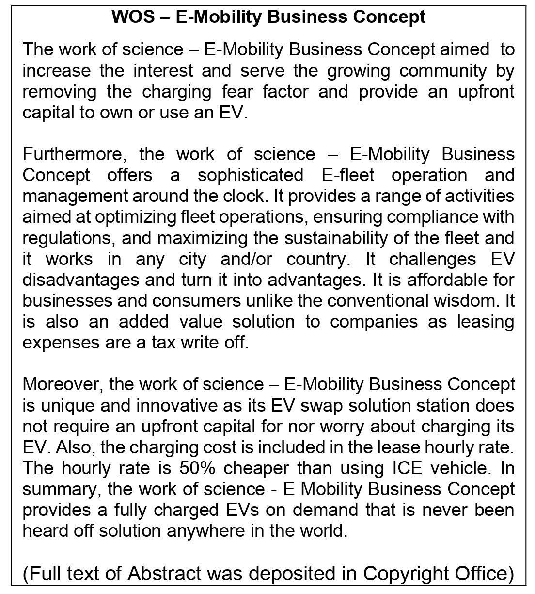 Work of Science: ‘E Mobility’ Business Concept