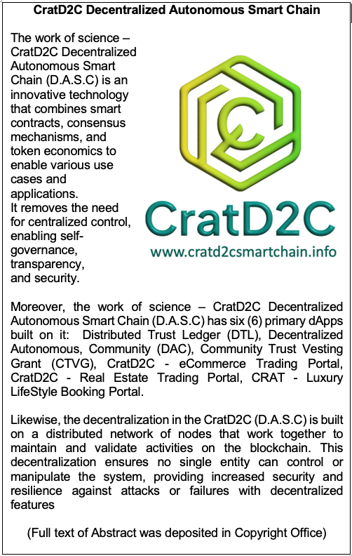 Work of Science: 'CratD2C' Decentralized Autonomous Smart Chain: Brand Name, Logo, Domain and Business Technologies