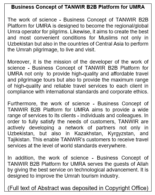 Work of Science: Business Concept of ‘TANWIR’ B2B Platform for UMRA