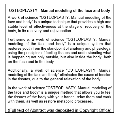 Work of Science: “OSTEOPLASTY - Manual modeling of the face and body”