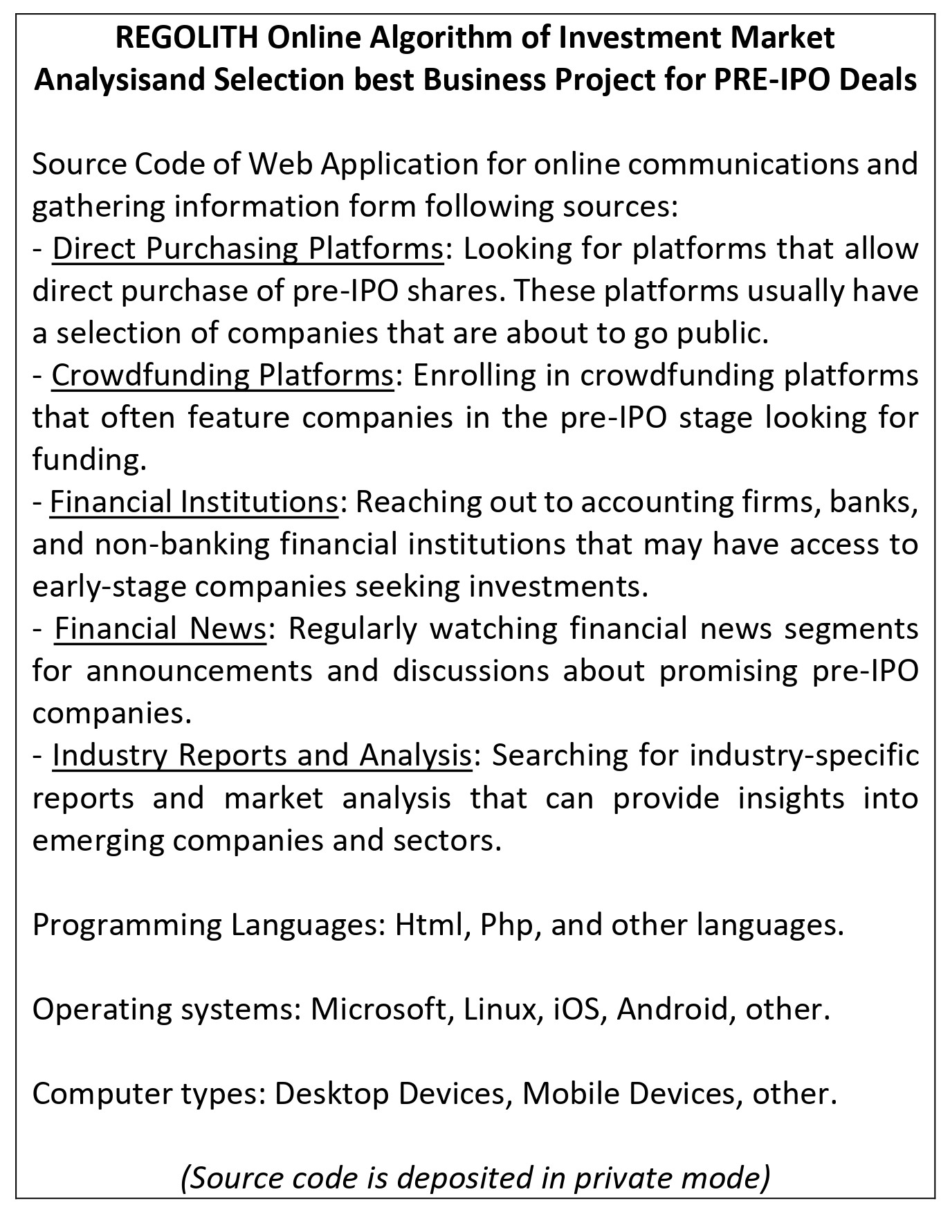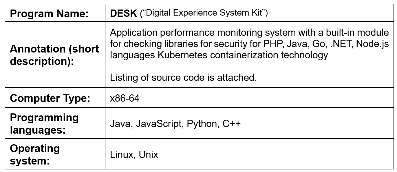 Вид объекта интеллектуальной собственности: Программа ЭВМ Наименование Targeted Surveys & Audit Platform (TSA / TSA Platform) Авторы: Ниценко Михаил Анатольевич, Филинский Александр Станиславович. Правообладатель ТОО «PrimeBridge» Авторское свидетельство № EC-01-001276 от 08.08.2017г.